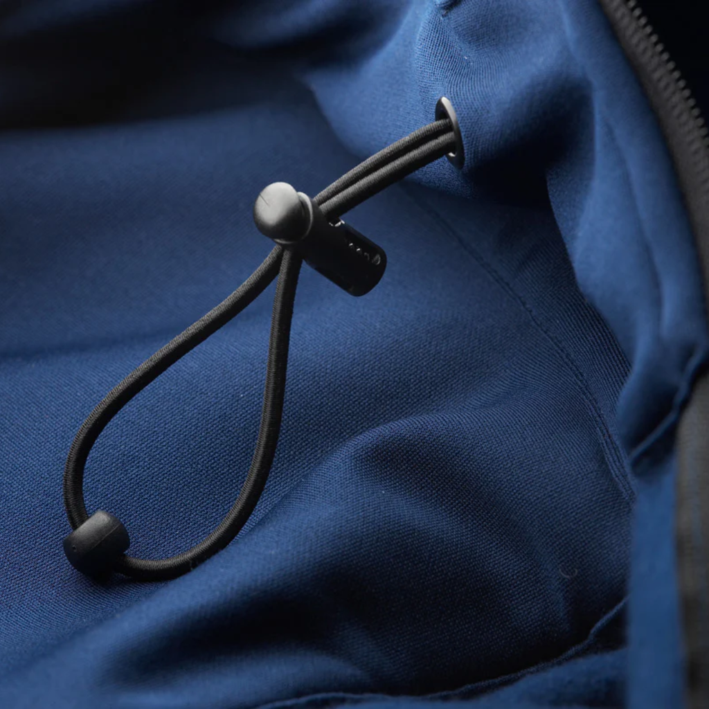 - Ribbed hem loop and cuffs